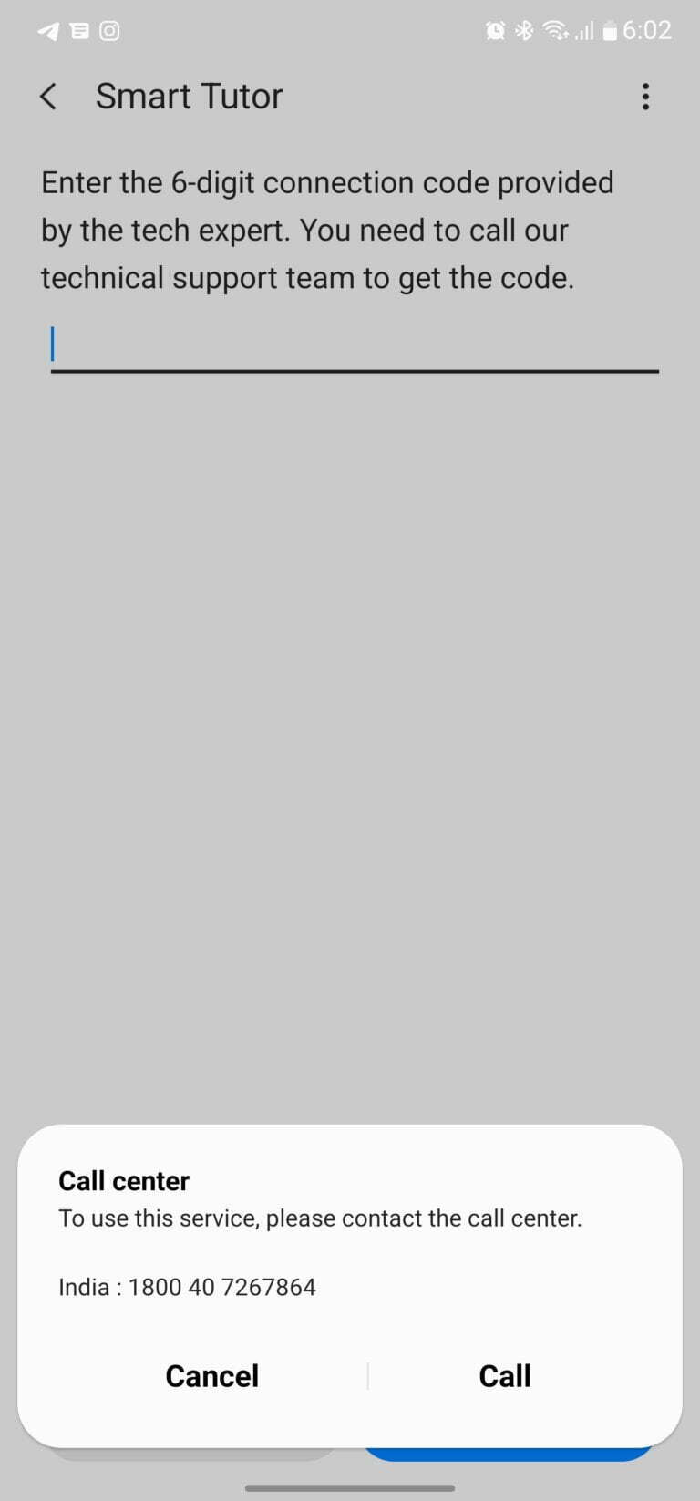4. The representative will then ask you to enter a 6-digit code inside the Samsung smart tutor app.