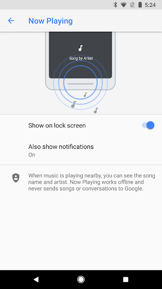 After Downloading the Music Database. You should be able to turn on the option named “Identify songs playing nearby” for both. On a Google Pixel device, the songs playing around you should automatically be identified and shown on the lock screen.