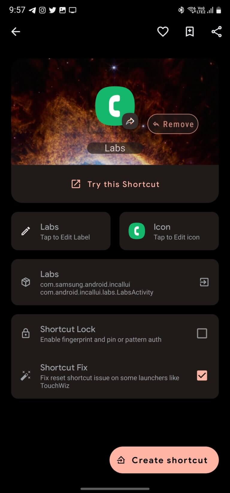- Inside the labs screen tap on the try this shortcut located right below the app icon.