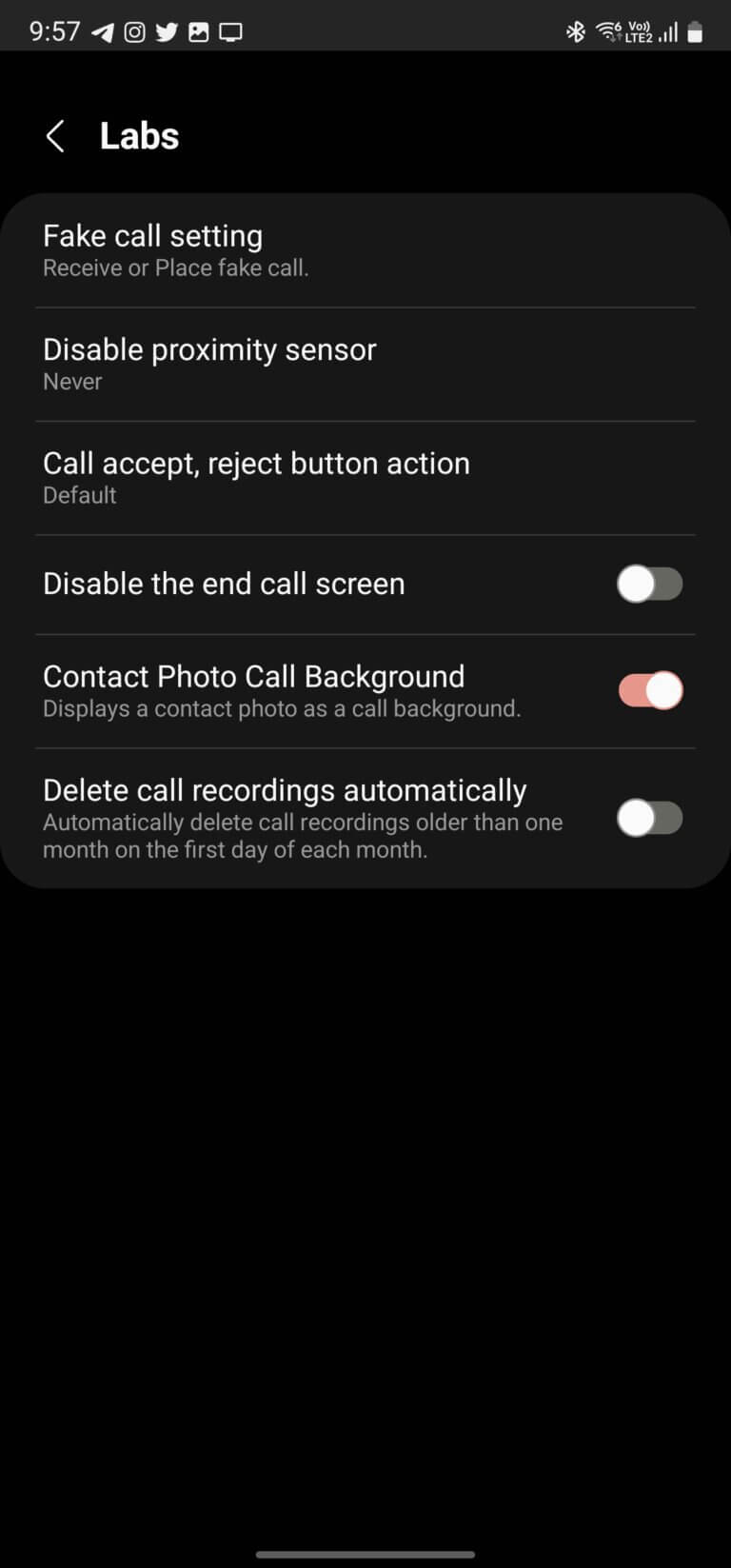 - Now, from the labs page tap and enable the toggle that says Contact Photo Call Background.